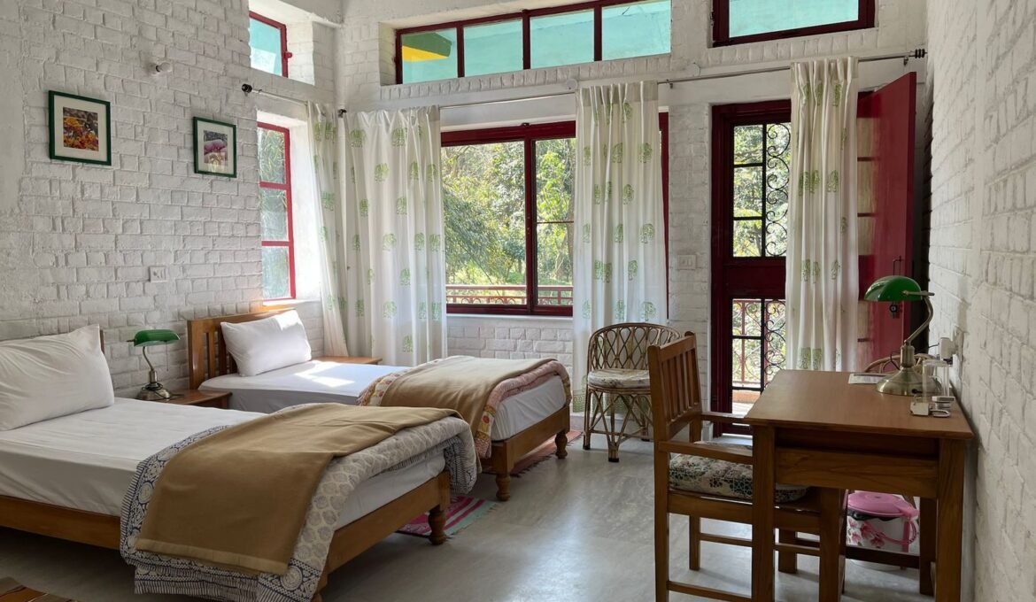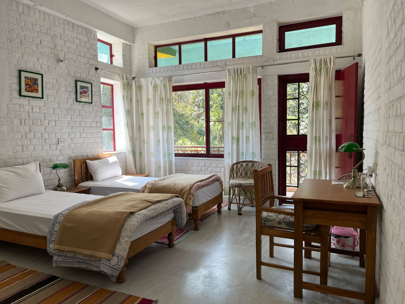 The Bhagirathi Room is one of our larger spaces, offering extra room to stretch, relax, and settle in. Perfect for couples, small families, or those seeking a little more breathing space during their retreat. Twin beds are fitted with spring mattresses, and the attached bathroom offers hot & cold water with fresh towels.