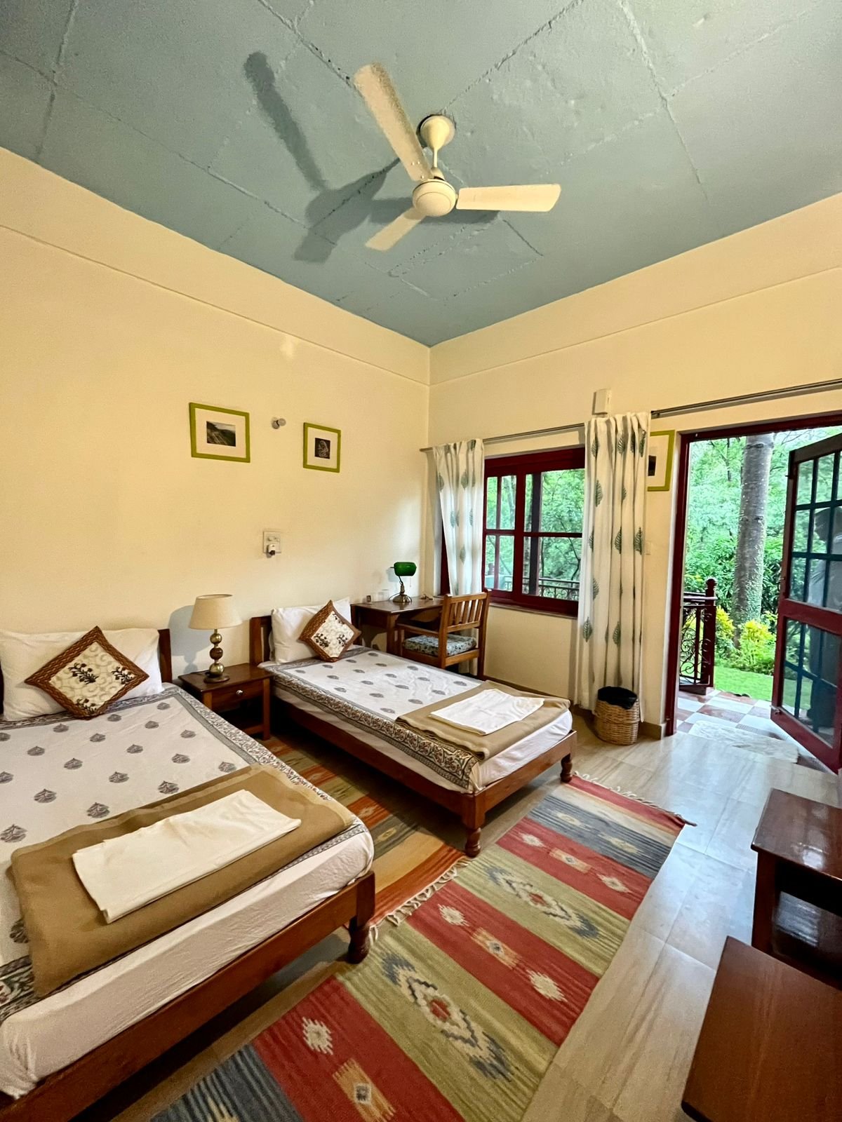 Similar in comfort to our standard Yamuna, the Yamuna Type 2 offers the same twin-bed setup and peaceful atmosphere, with a slightly different layout. Ideal for friends, fellow retreat guests, or solo travelers who enjoy shared accommodations.